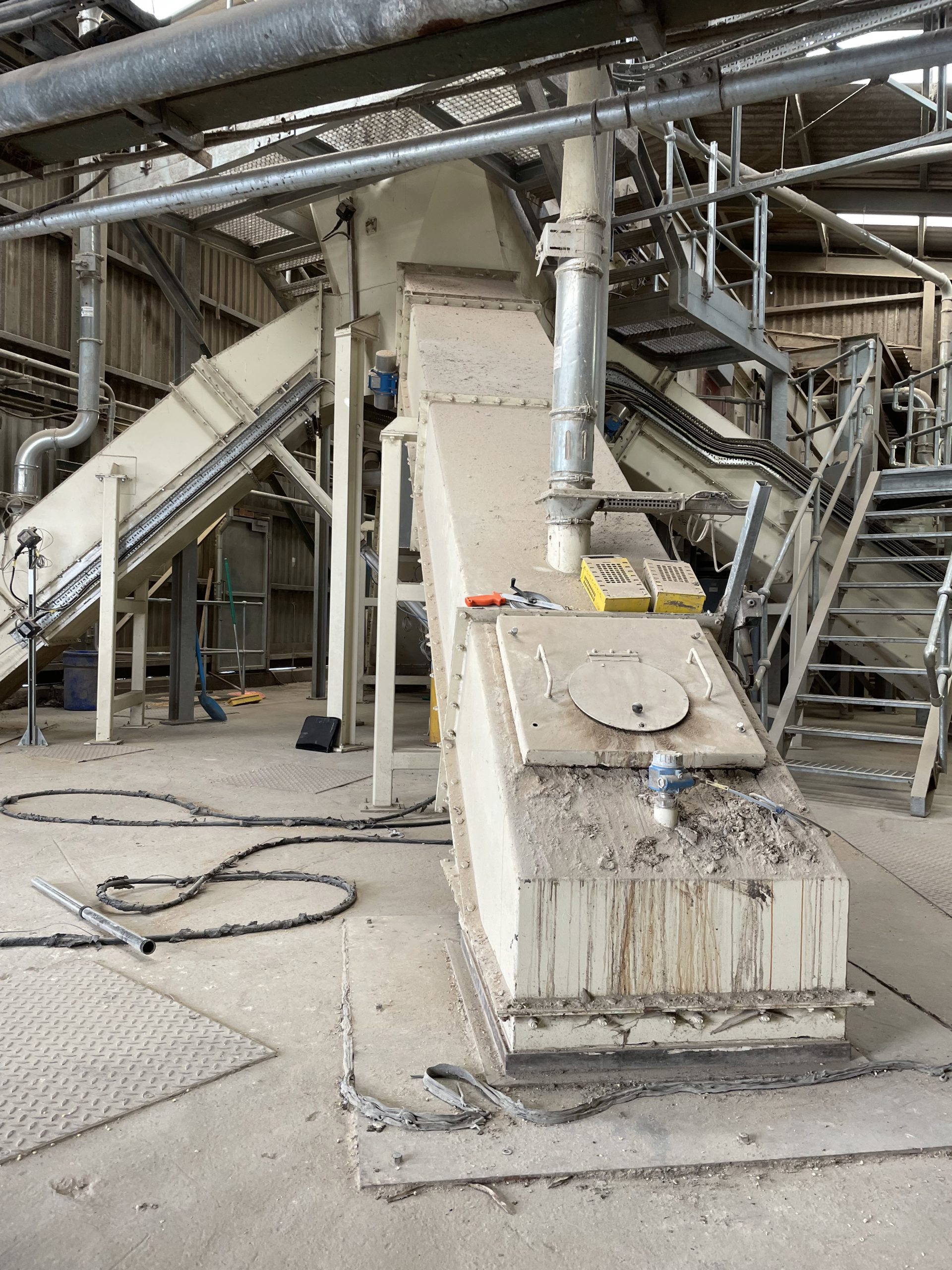 As the liner wore, the internal surface became increasingly rough. This roughened profile encouraged material to stick and build up in the chute, leading to progressive and frequent blockages. When blockages occurred, maintenance teams were required to stop the process and dismantle the chutes to manually clear the blockages. As the chutes fed four separate silos, any blockage prevented silo filling. With no storage capacity available, production was forced to stop.